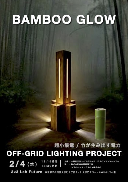 2026年2月4日(水)に「OFF-GRID LIGHTING PROJECT」 発表会およびトークセッションイベントを開催します。本プロジェクトでは、荒廃が進む竹林という環境課題に対し、竹文化の再生と生態系保全をテーマに、超小集電技術(MPC)を活用した新しい照明のあり方を提案いたします。